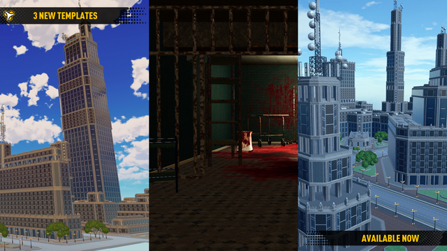 The first of the two new cityscapes is a modern city with intricate building designs and pretty little parks.