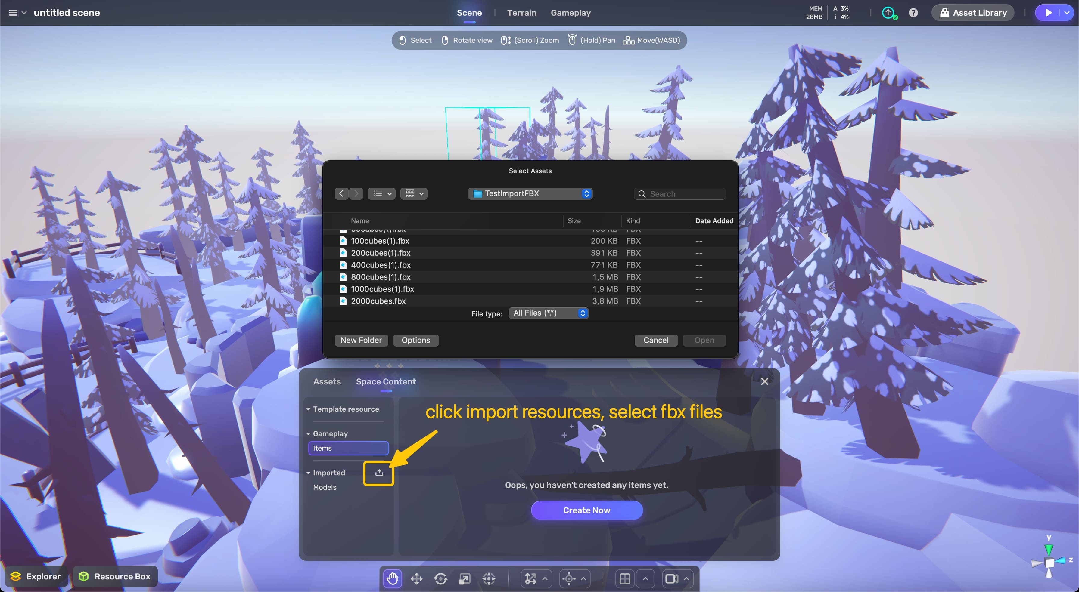 Import fbx: import your fbx files from Resource box â Space Content.